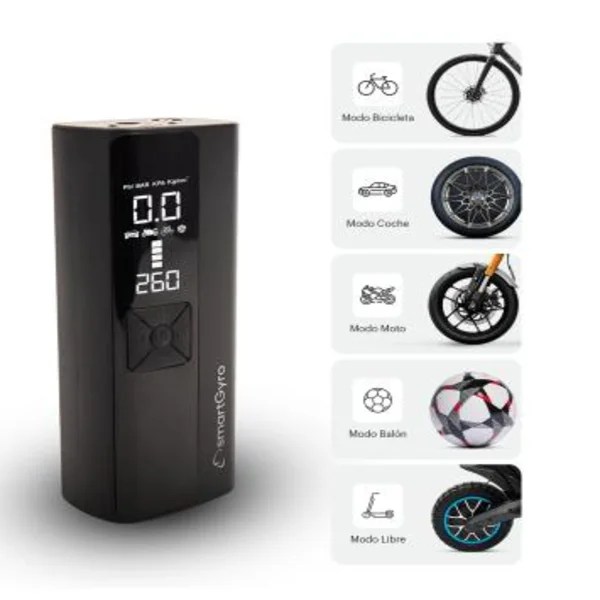 - 4 modos de inflado (coche, moto, bicicletas y balones).