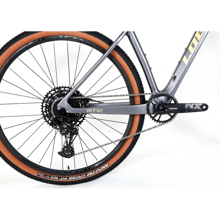 En Electyum, tu tienda online de bicis de montaña encontrarás la nueva MT12, una bicicleta de montaña btt con cuadro de carbono de 29″ y transmisión SHIMANO Sram NX Eagle 1×12. La bicicleta btt, incorpora una horquilla de aire LOBITO SR RTS 34 de 100mm de recorrido , con bloqueo en el manillar y el amortiguador delantero. Si estás buscando una bici de montaña, super equipada con componentes de alta gama a un precio excepcional, este es tu modelo perfecto para disfrutar al máximo del ciclismo de montaña.