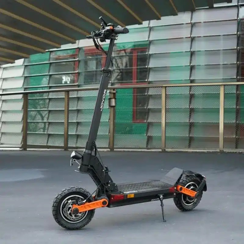 El Joyor S-PRO garantiza un alto nivel de seguridad con su sistema de frenos de disco hidráulicos delanteros y traseros, que ofrecen una frenada precisa y confiable en cualquier situación. Las luces delanteras, traseras y de giro integradas mejoran la visibilidad, asegurando viajes seguros incluso en condiciones de poca luz. Con un diseño robusto de aleación de aluminio y un llamativo basculante naranja, este patinete no solo ofrece durabilidad y estabilidad, sino que también destaca por su estética moderna. Certificado por la Dirección General de Tráfico (DGT) de España, el Joyor S-PRO cumple con todos los estándares de seguridad y normativa, convirtiéndolo en la opción perfecta para quienes buscan aventura y confianza en cada trayecto.